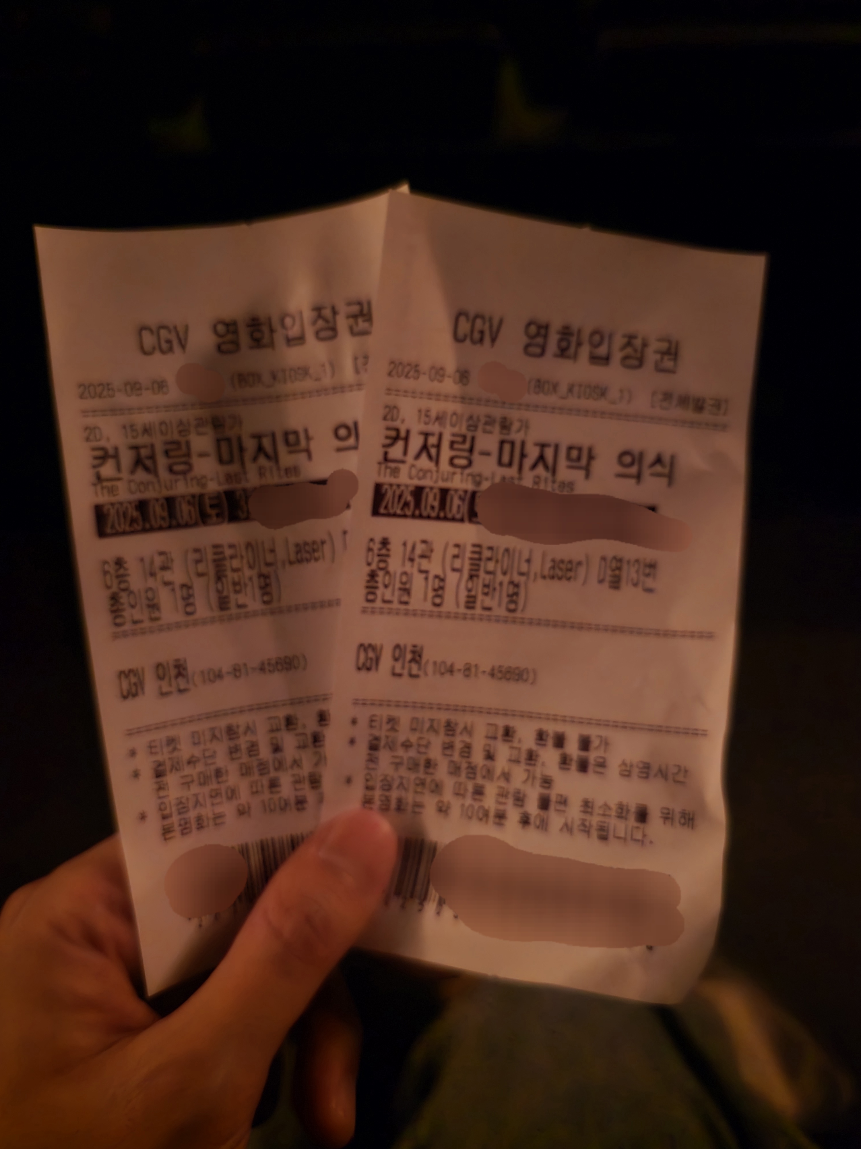 역시 공포물중엔 컨저링이 그나마 낫다 최소 10분이상은 눈가리고 보긴했지만..ㅋㅋ 대비못하고 놀랐을때 소리지를뻔했는데 상영관이 너무 조용해서 꾹 참았네